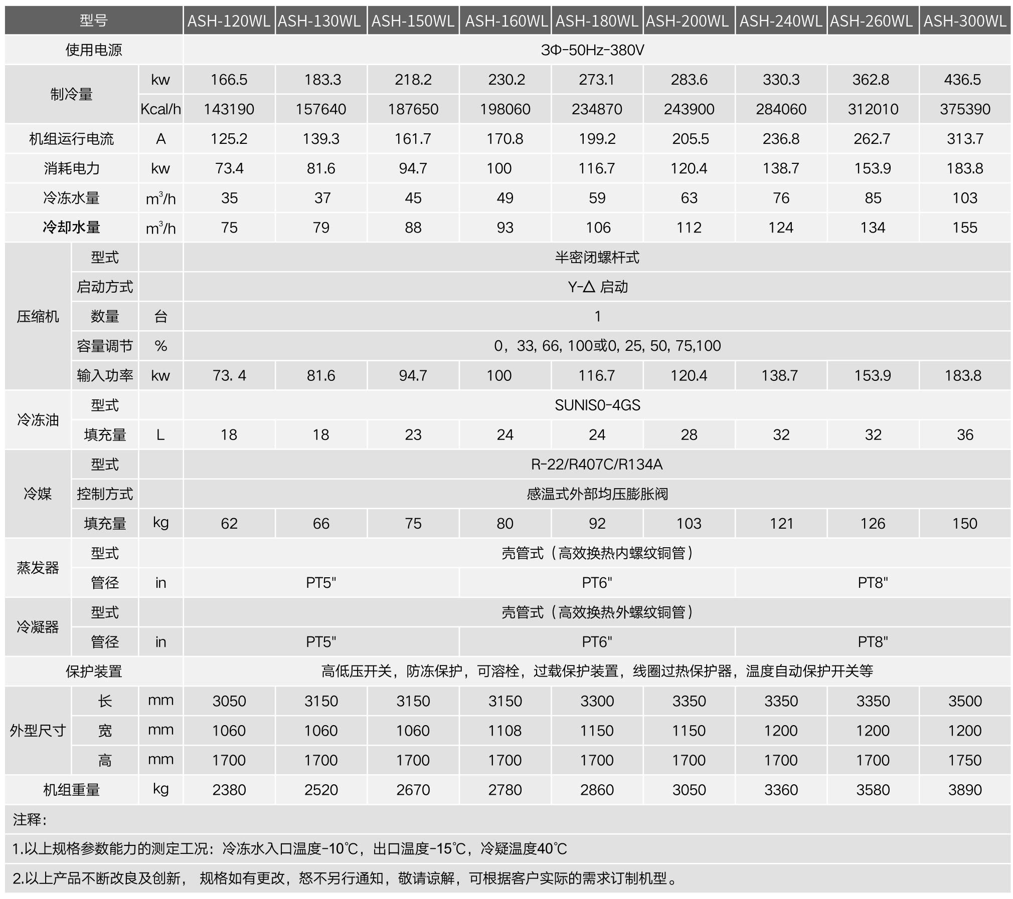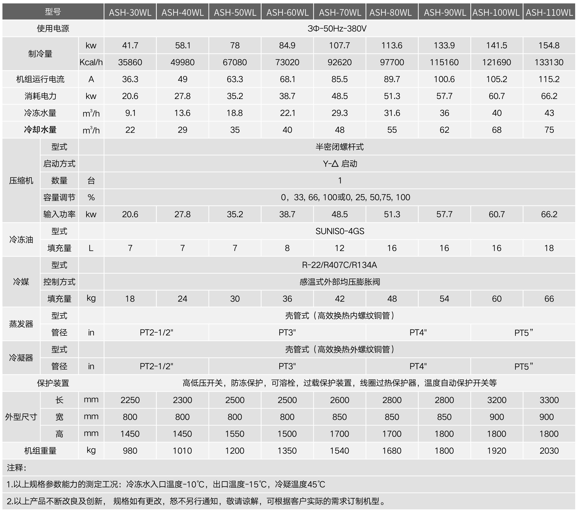 ASH-WL系列水冷低温式工业冷水机是针对医药、化工等特殊行业而精心研发设计的新-代低温冷冻设。备,其制冷温度可在-15°C~40°C之间任意调节。小匹数机型采用欧美进口知名品牌的全封闭压缩机;.大匹数机型采用国际知名品牌(台湾汉钟、比泽尔)螺杆压缩机,制冷效果充足、规格齐全,是新一代制冷设备的典范。