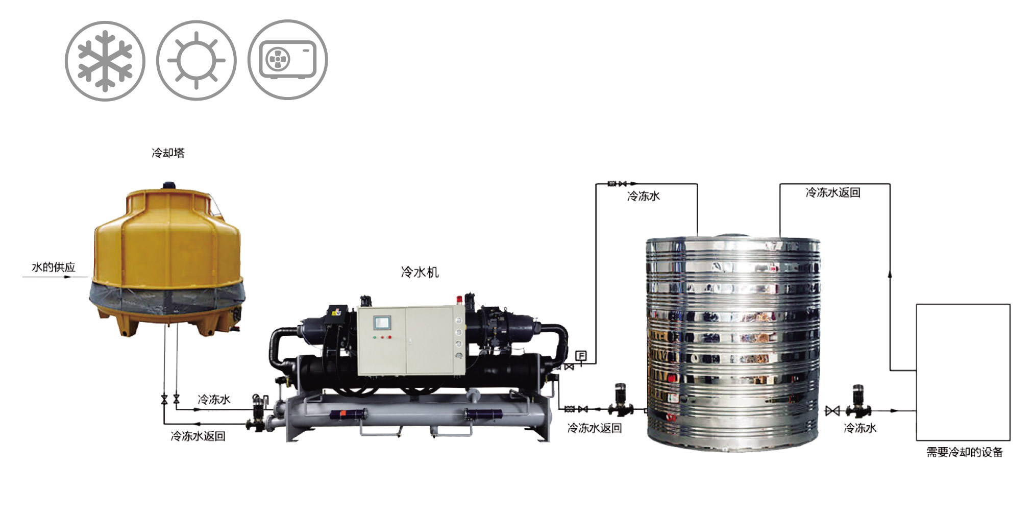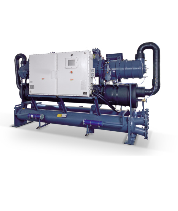 本公司水冷螺杆式冷水机组全部精选原装进口名牌半封闭螺杆式。双螺杆5:6齿数比及先进的线性设计,低碳节能环保;性能好、噪音低。根据客户需要和冷吨位大小,采用单机或多机组合。压缩机可依负载变化,自动交替运转,平衡各压缩机的运行时数,大大延长了冷水机组的使用期限,无故障运行可达45000小时以上。